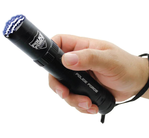 The Police Force Stun Gun Flashlight, also known as a police flashlight taser, combines tactical power and illumination in a compact 6.5-inch desig...