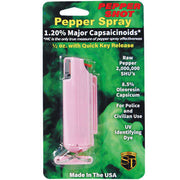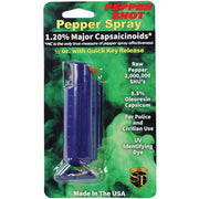 Made in the USA, this ½ oz pepper spray measures 3.5 x 1.5 inches and has a 36-month shelf life. The hardcase holster, available in Black, Blue, Pink, or Red, includes a quick-release keychain for portability. The UV dye aids law enforcement in identifying assailants, and the safety lock ensures secure storage.