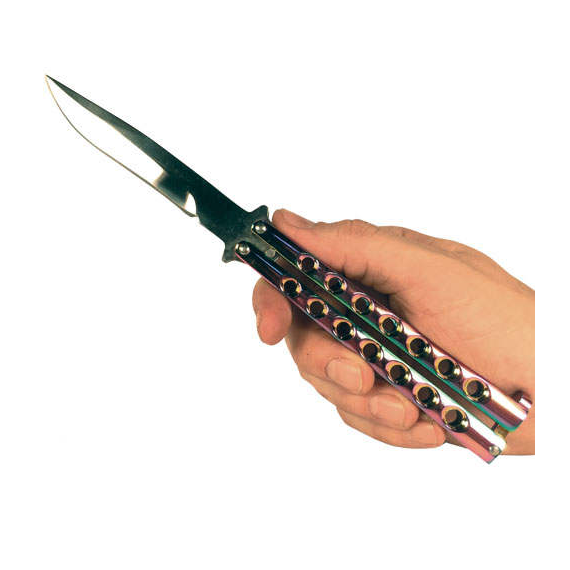 Stainless steel folding balisong knife with a straight back blade is tapered and angled upward for a superior cut. The handle is finished with a nice and smooth, comfortable surface. The handle is well-balanced with tactical cutouts and a lightweight design for solid flipping.