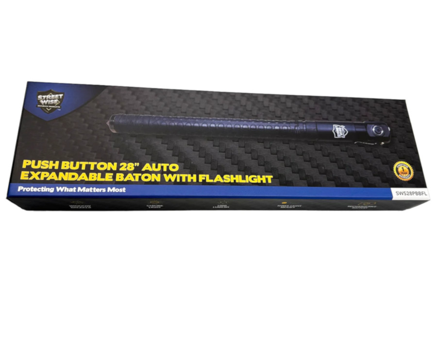 Equip yourself with the push button expandable baton with flashlight from TBOTECH—the Streetwise Push Button Auto Expandable Baton with Flashlight, a multi-functional self-defense tool designed for rapid deployment and tactical versatility. With a single button press, this baton instantly extends to 20 or 28 inches, providing a powerful reach to keep threats at a safe distance. It features a 1000-lumen flashlight with three modes—high, low, and strobe—to illuminate dark areas or disorient attackers, making it a top choice for those seeking an expandable baton flashlight. This baton is built for both professionals and civilians seeking reliable protection.