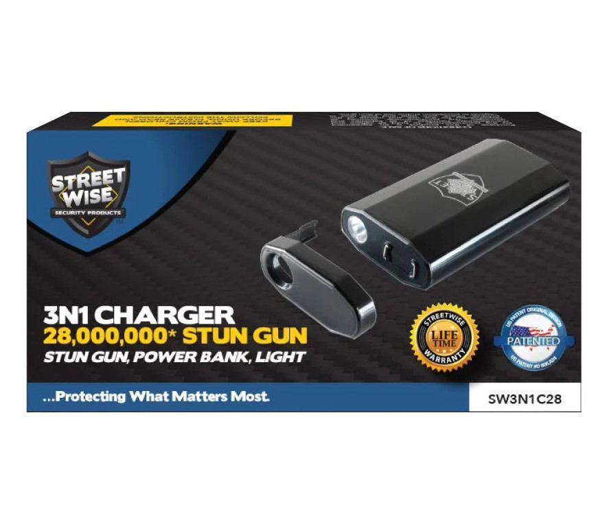 - Streetwise 3N1 Charger 28,000,000* Stun Gun, Power Bank & Light